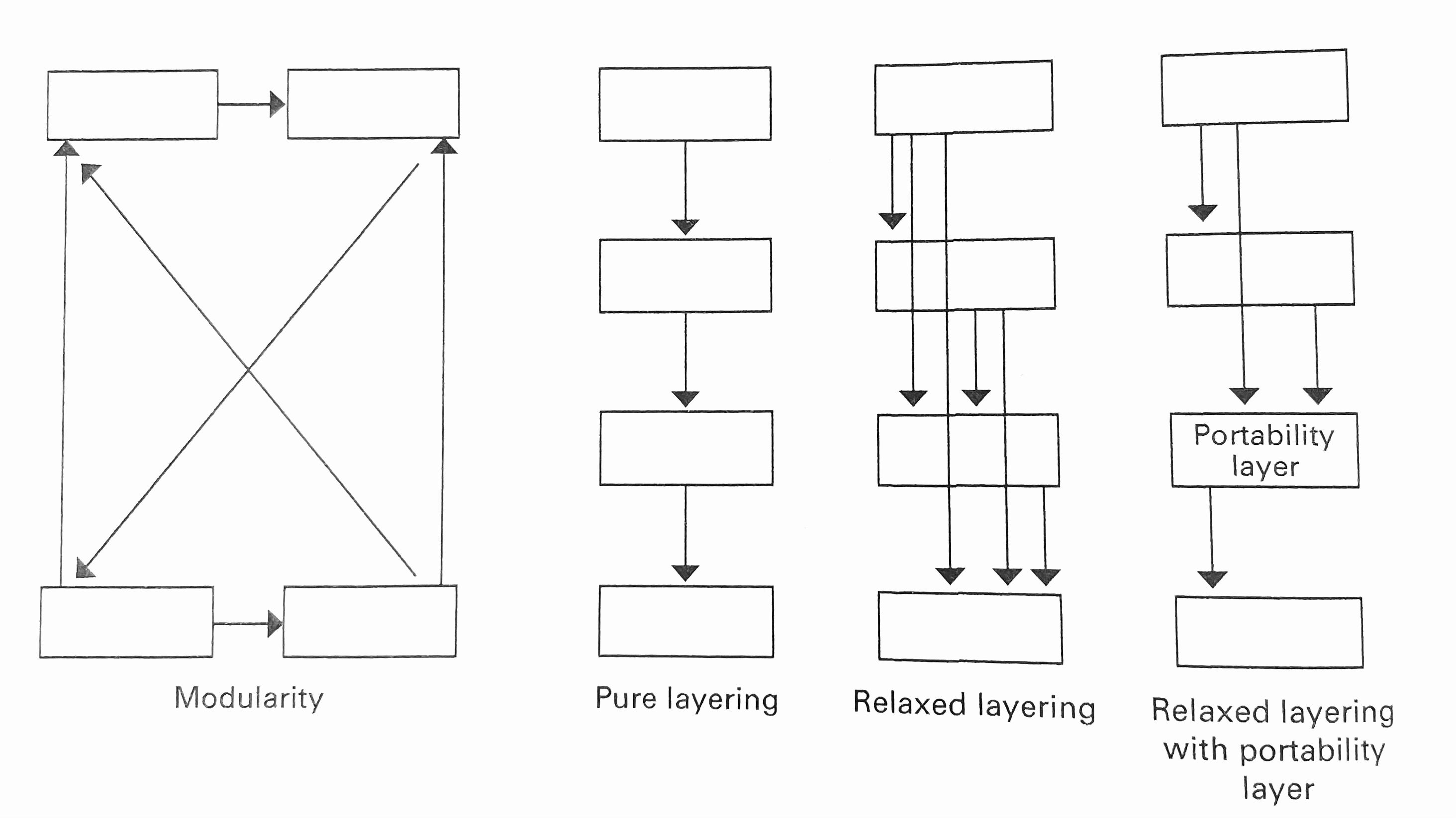 Layering is a special form of modularity that restricts interactions between modules. A module assigned to a layer can use any of the modules in the same or in a lower layer; however, it cannot use a module belonging to a higher layer.